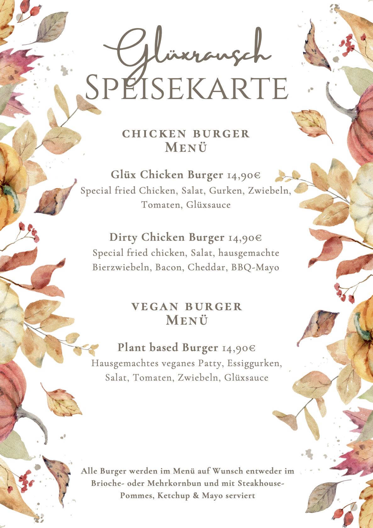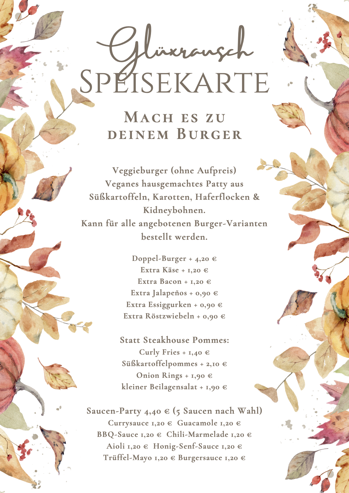 Mit Liebe zum Detail erfinden wir immer neue Kreationen, die unsere Gäste begeistern. Spitzen Qualität von Fleisch & Brot und viele hausgemachte Saucen runden die Gaumenfreude ab. Willkommen im Glüxrausch.